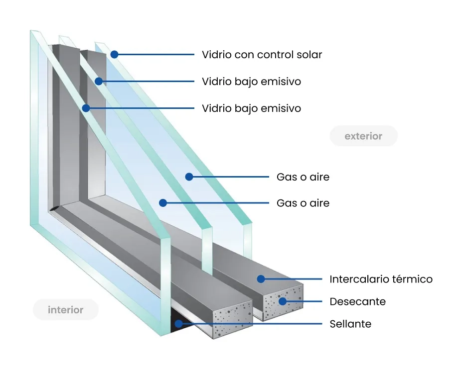 La separación mediante una cámara de aire aumenta el aislamiento térmico.